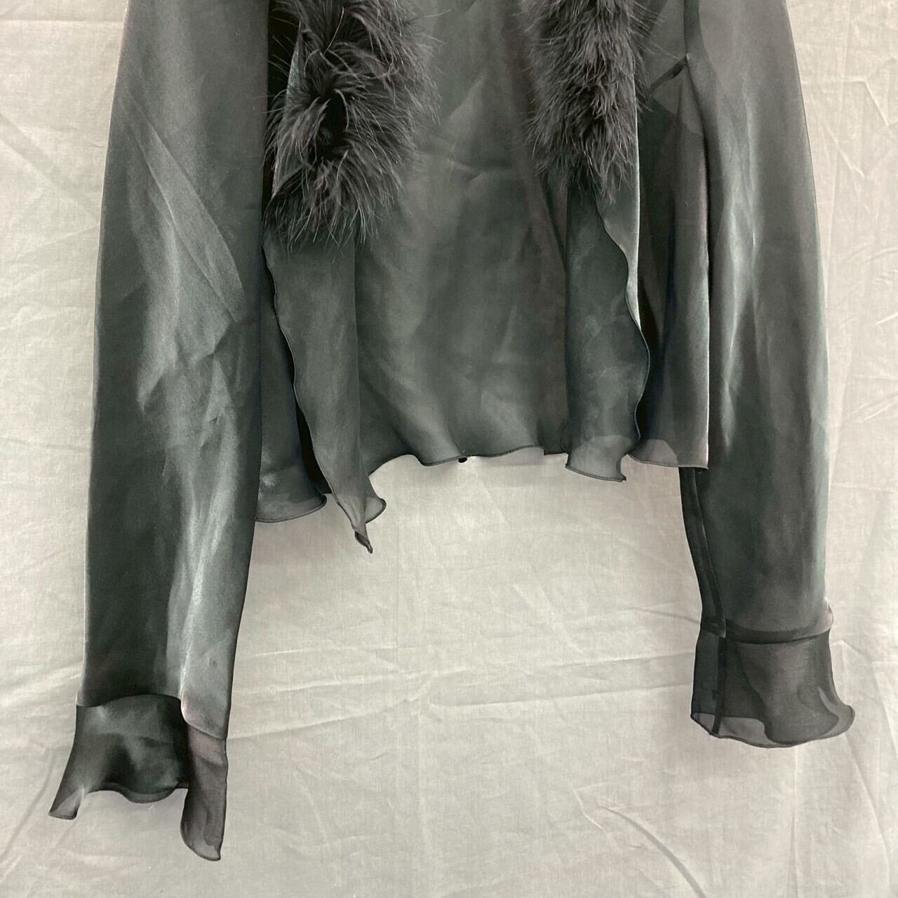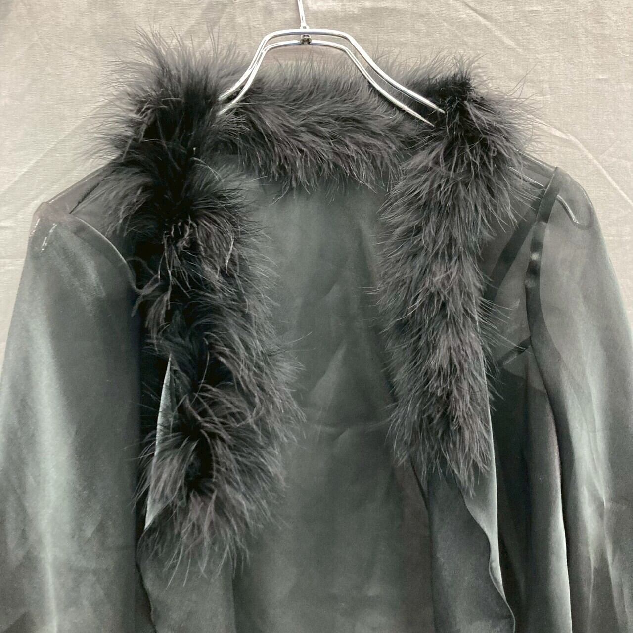 【レディース】MARIKO KOHGA シースルーシャツ トップス ブラック ファー取り外し可