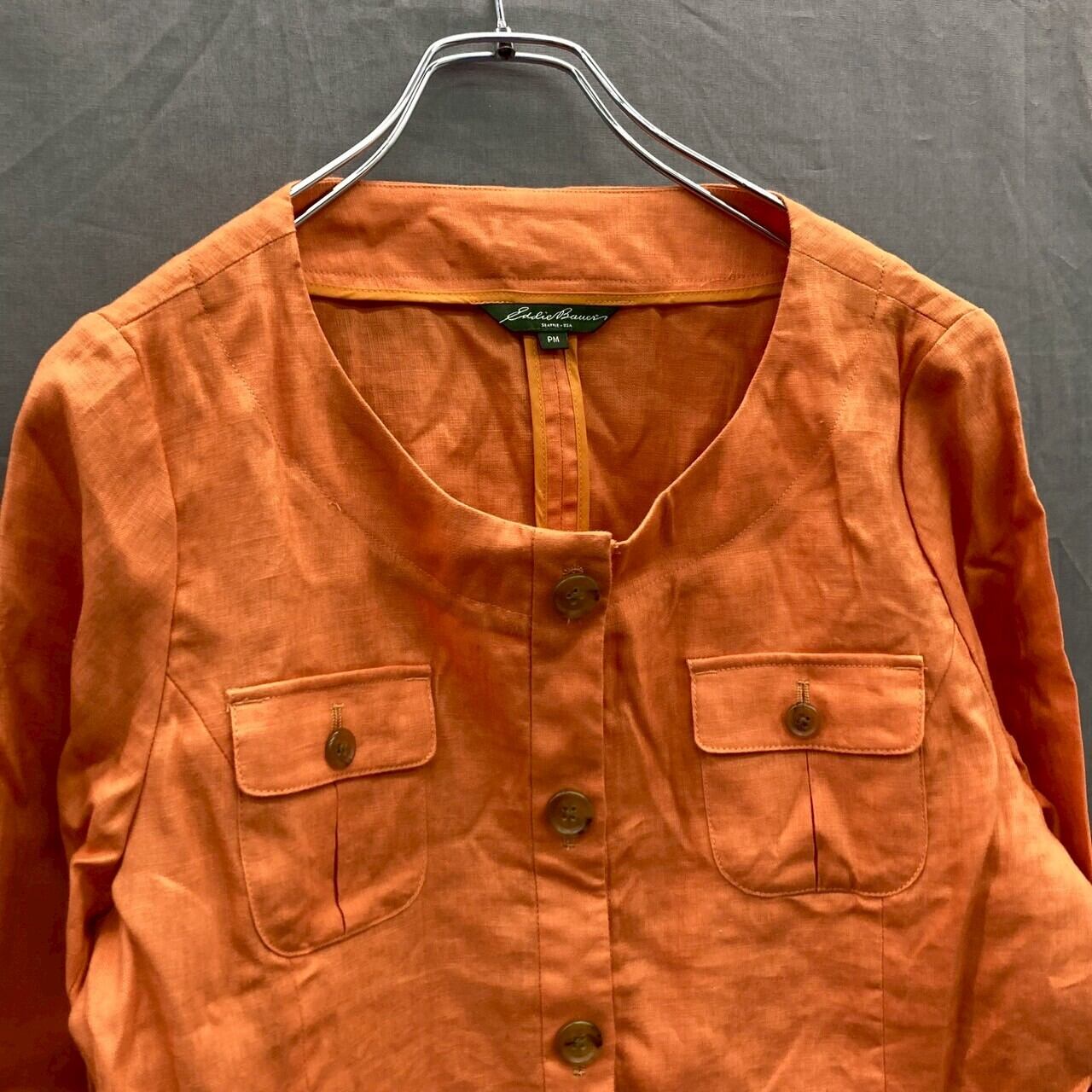 Eddie Bauer エディーバウアー リネンジャケットシャツ オレンジ系