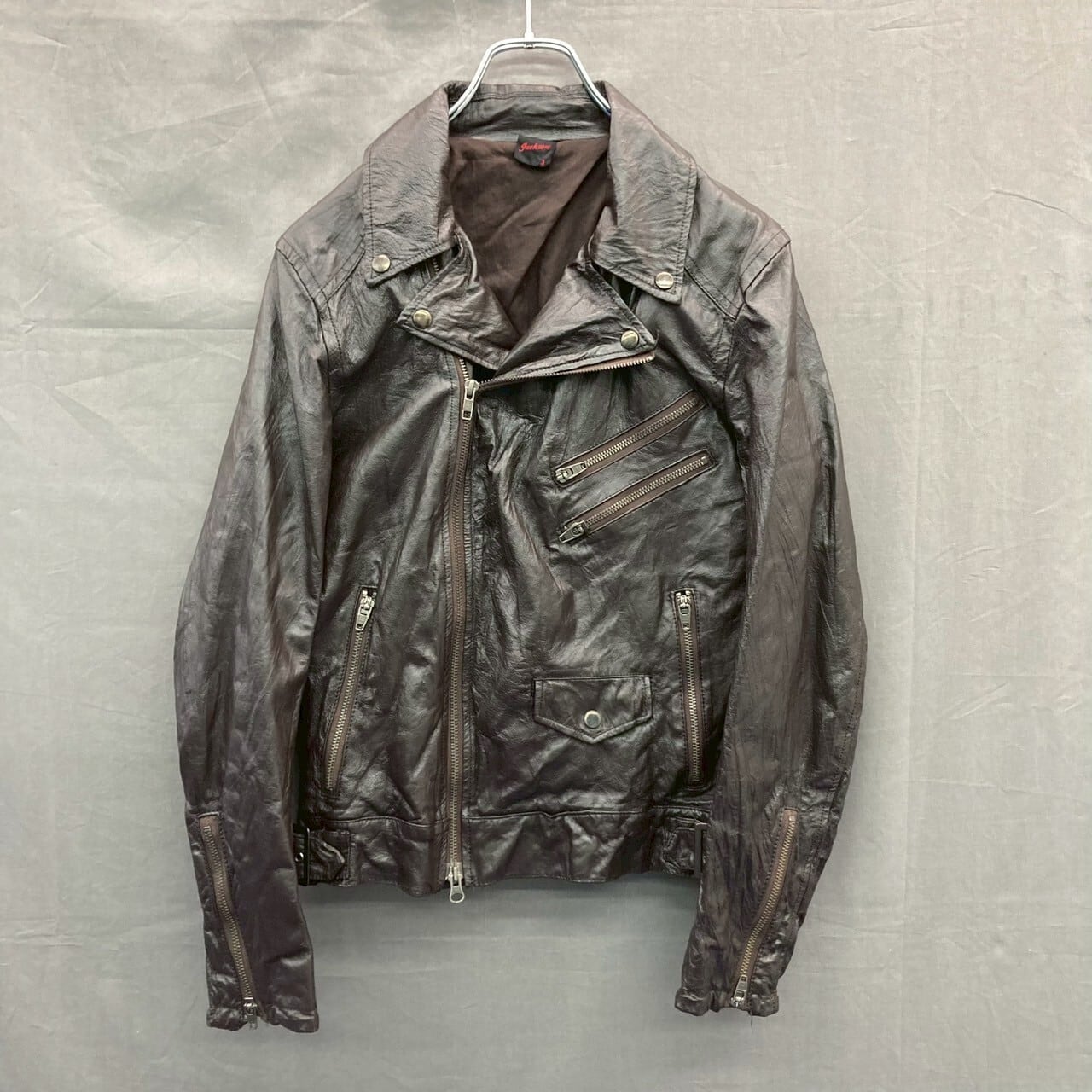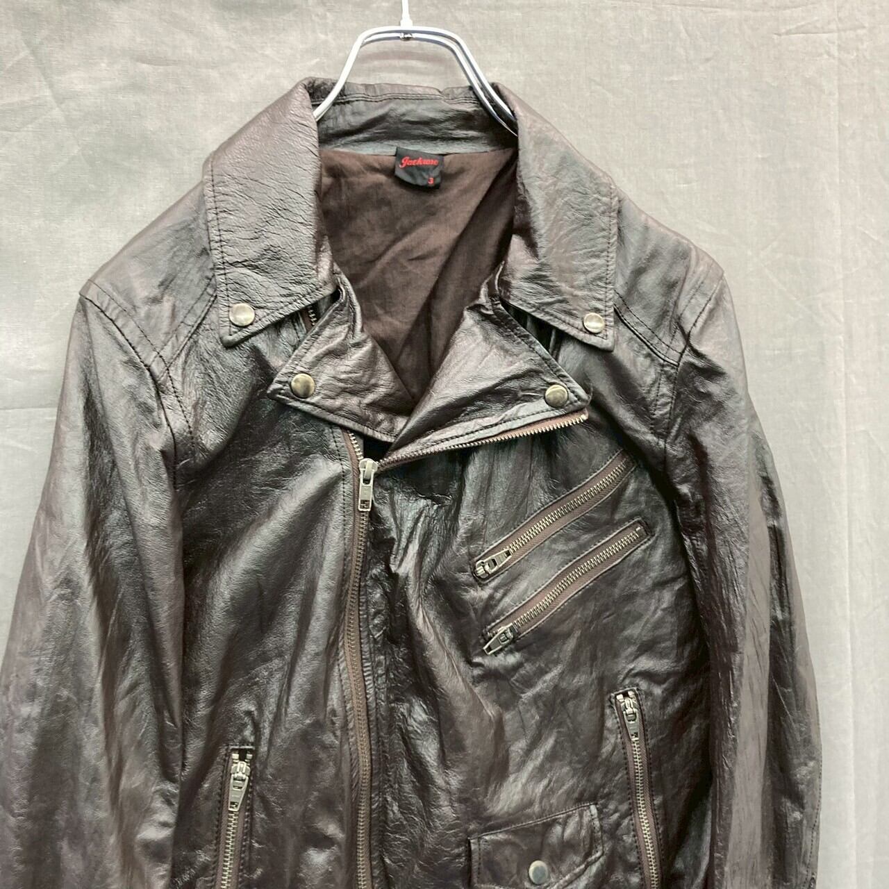 レザージャケット ダブルライダース ダークブラウン系 3サイズ