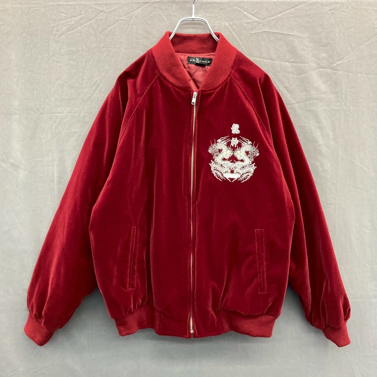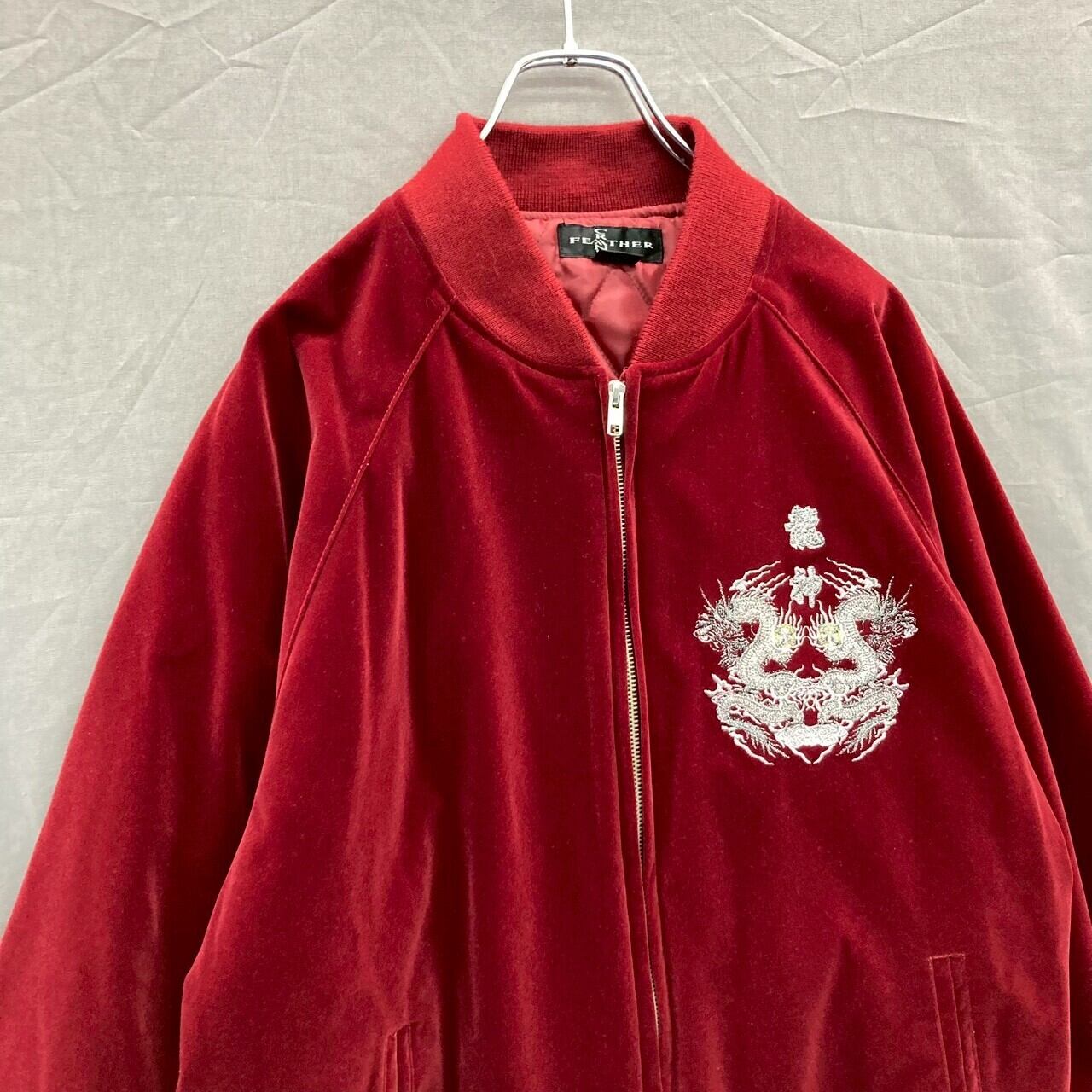 スカジャン ブルゾン 刺繍 レッド系 フリーサイズ