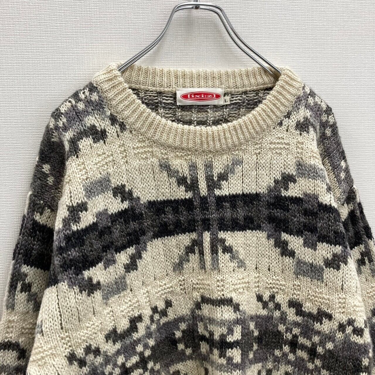 ixi:z デザインセーター ウルグアイ製 オフホワイト系 Lサイズ