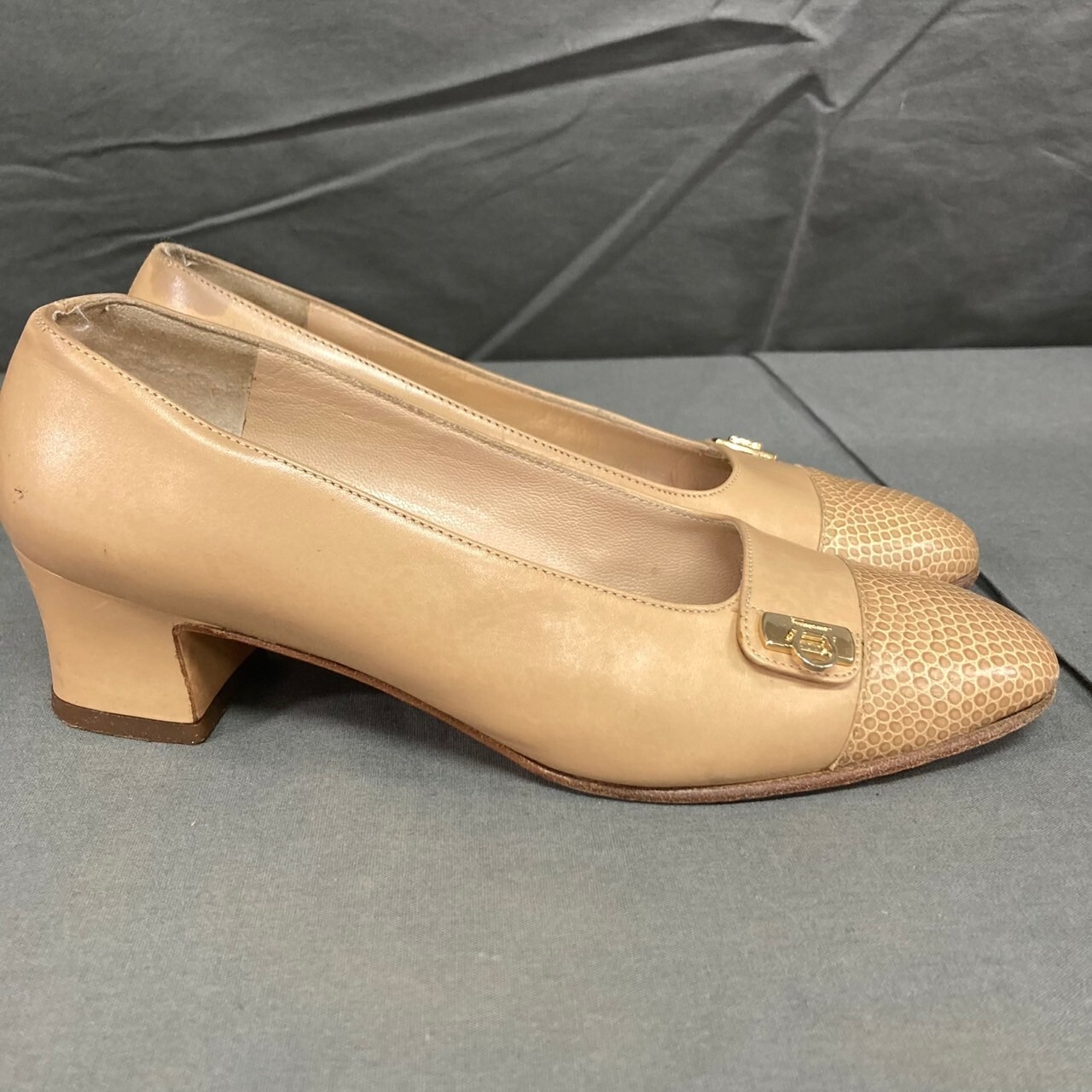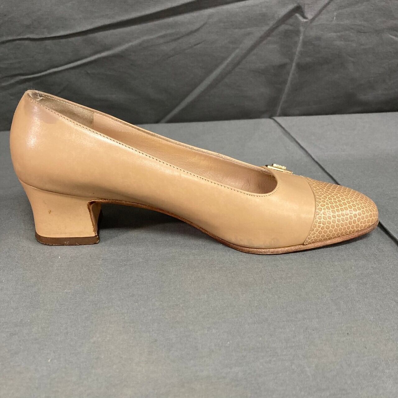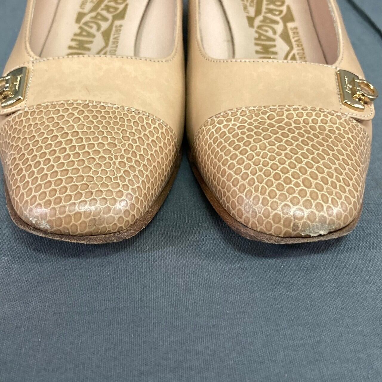 【レディース】salvatore ferragamo サルバトーレフェラガモ パンプス ヒール イタリア製 ベージュ系 4 1/2サイズ(約22cm)